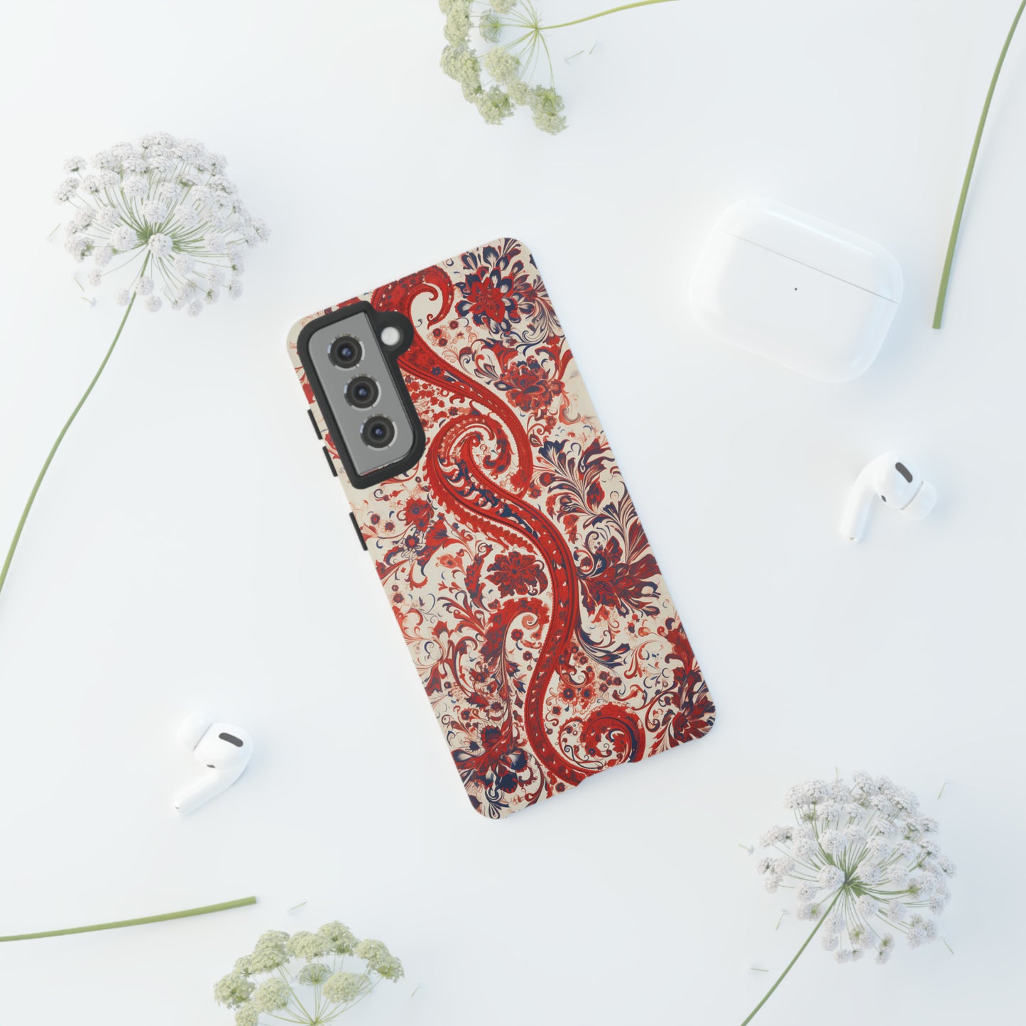 Our Red Paisley design for Apple iPhone, Samsung Galaxy, and Google Pixel devices has a wonderfully bright, colourful and eye catching aspect available in a matte or glossy finish.